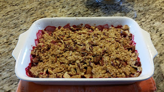 Cran-apple crunch is a Thanksgiving staple in the Randall ‘must-haves’ line up, every year. I think the first person to make it for our family when I was a youngster was my Aunt Norma. I recall that we all loved it so well, that she made it each year after it appeared on the scene in the late 60’s or early 70’s. We used to have a huge dinner with all of Mom’s sisters and families. There were 10 cousins, 3 aunts and uncles, my family of four and Meme – those were the days! Now, my family enjoys it every year too! It’s the one recipe I follow exactly, so here it is for you!