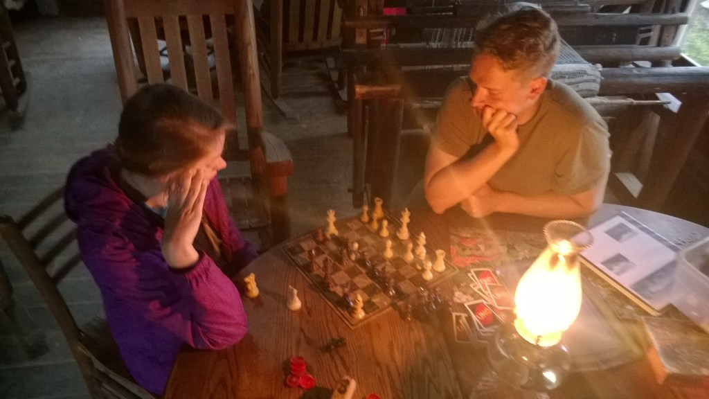 Pictured: My two children, spending time playing chess one evening. It was rather long ago, but they did spend time together on a chilly night on top of a mountain retreat!